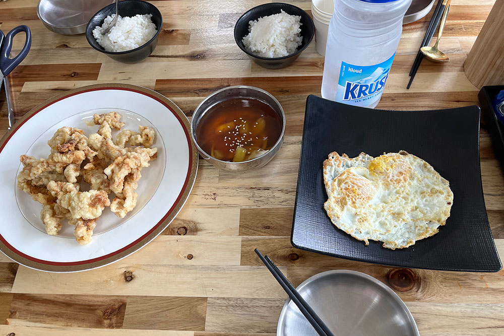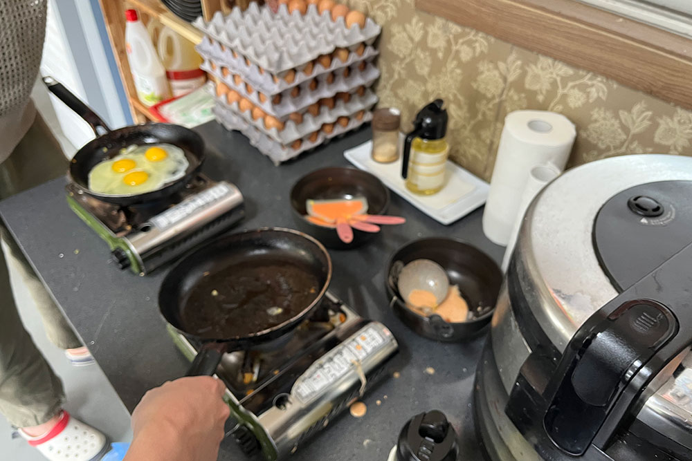 기다리는 동안 셀프존에서 따끈한 계란후라이를 만들어왔고, 아이들이 좋아해서 만족도 업!