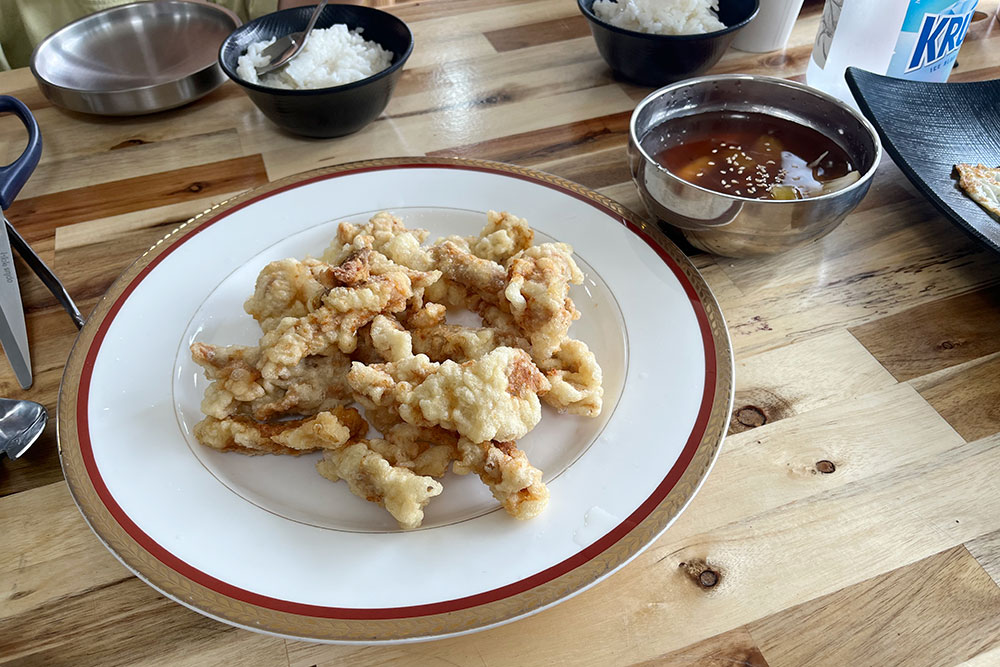 먼저 나온 건 탕수육이었는데요. 양은 소 사이즈라 아이들이랑 먹기 딱 좋은 정도였어요.